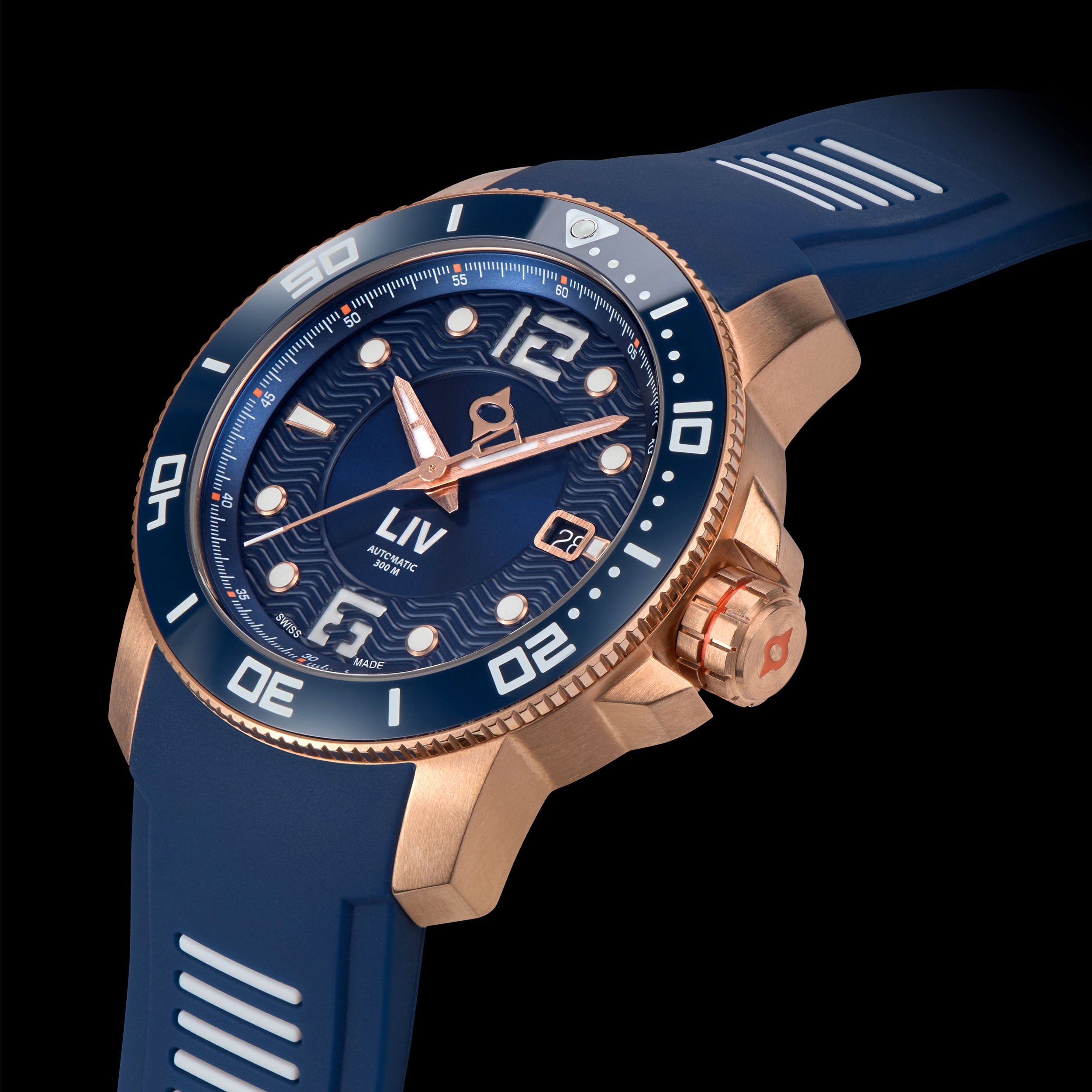 Where sophistication meets the sea. The Bavarian Rose brings dive-ready performance and Swiss craftsmanship together in a harmony of cream and caramel — elegance built for the depths.