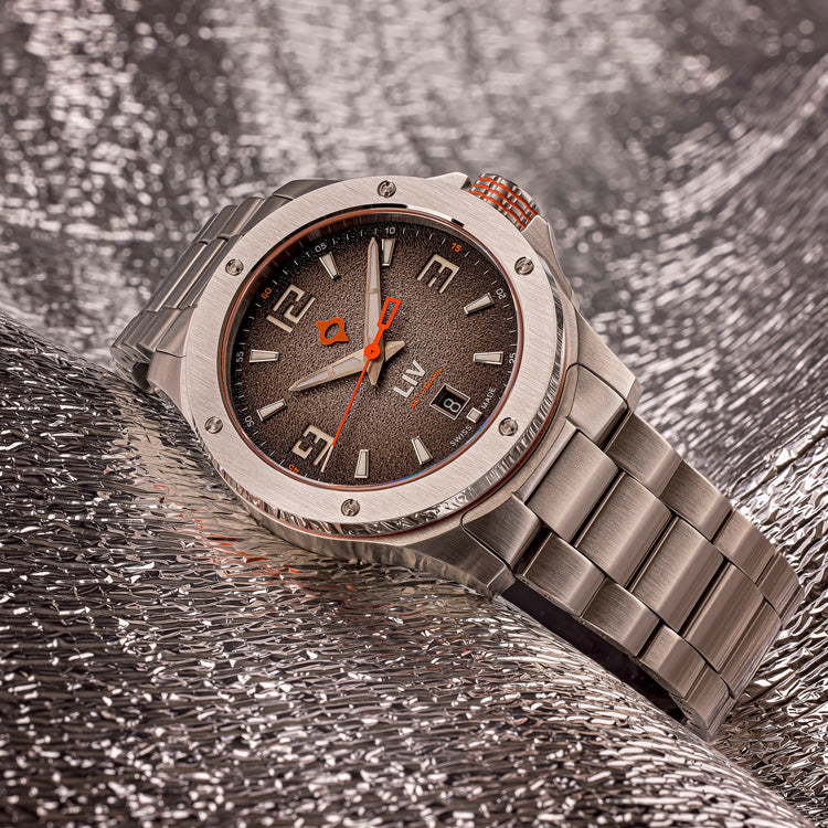 Surgical grade 316L stainless steel and skeleton case-back, steel screw fastened bezel, and screw-down crown with LIV logo enamel