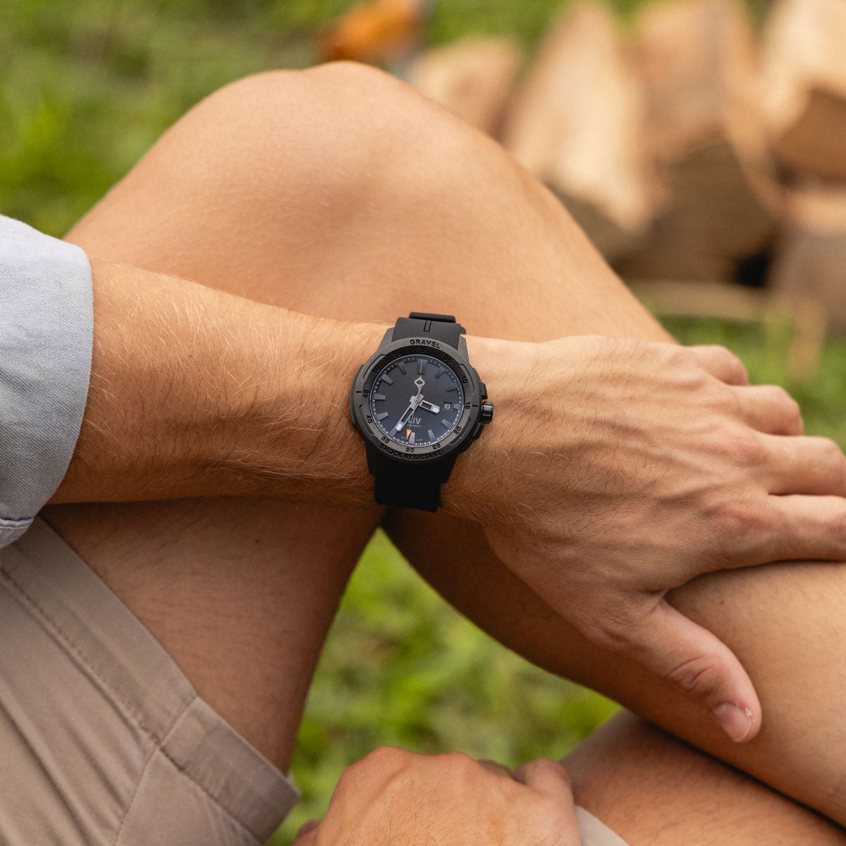 The Stealth Black Gravel 001 is just flat-out cool. The fully blacked-out case and dial give it that clean, low-key vibe that somehow stands out by not trying. It’s crazy light, super comfortable, and the lume pops just enough without ruining the stealth look.