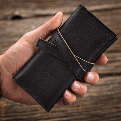 Stash away with confidence thanks to the soft and supple top-grain nappa leather. Protect your watches in style. Our black-stained, dual-treated top-grain leather roll offers surprising durability for your wildest journeys. Leather inserts ensure no clashing, and the security strap protects against accidental slip-outs. Neat, secure, and durable with extra room for your growing LIV collection.