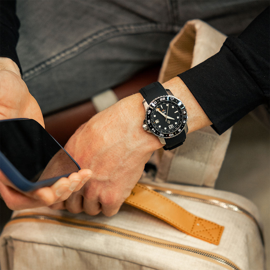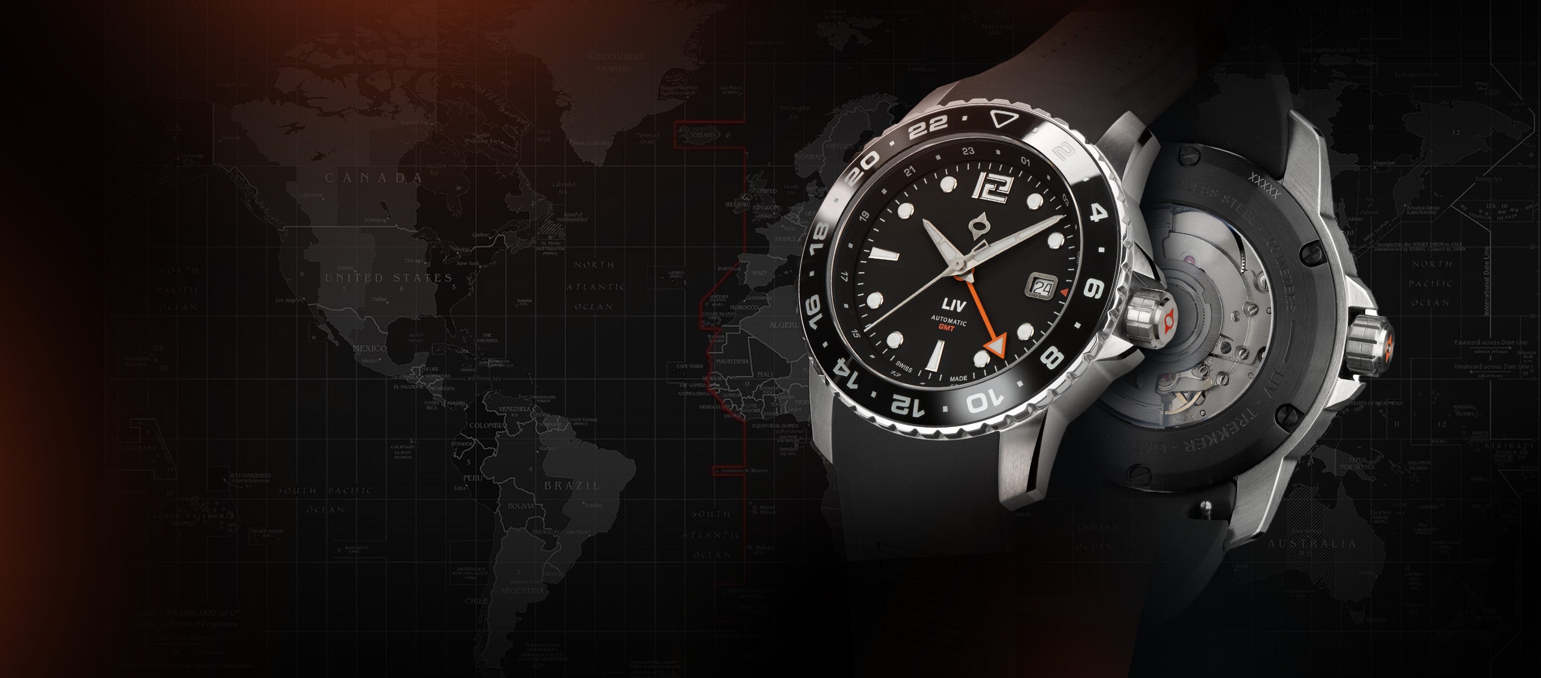 The LIV Trekker GMT is water-resistant to 100 meters (330 feet), and the screw-down crown ensures no water will ever get into your timepiece.